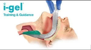 Supraglottic airway placement to help breathe for unconscious patients (see left)